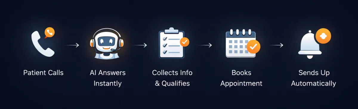 Your AI answers instantly, captures patient details, and books appointments 24/7.